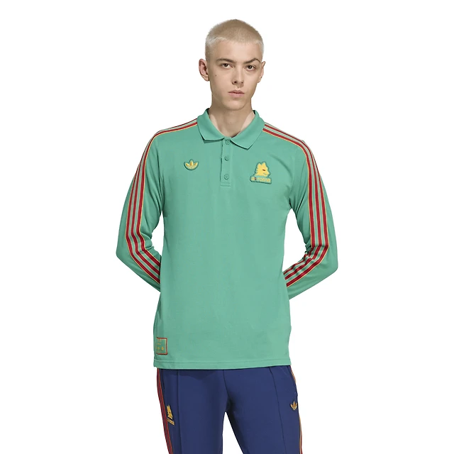 Men's adidas Green AS Roma Terrace Icons Long Sleeve Polo