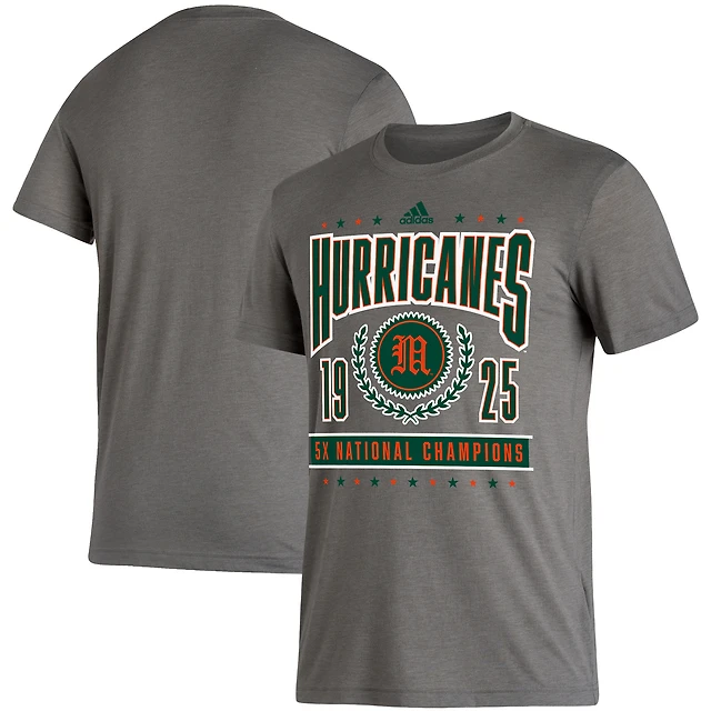 Men's adidas Heathered Charcoal Miami Hurricanes 5X National Champions Reminisce Tri-Blend T-Shirt