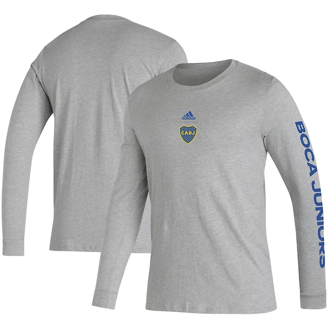 Men's adidas Heather Gray Boca Juniors Team Crest Long Sleeve T-Shirt