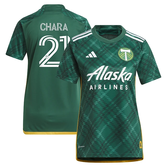 Women's adidas Diego Chara Green Portland Timbers 2023 Portland Plaid Kit Replica Jersey