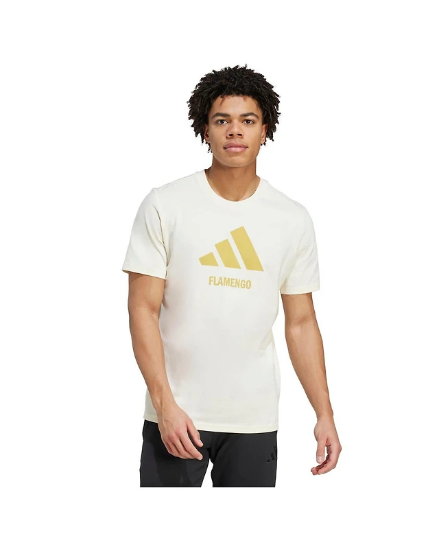 Adidas Men's Cream Cr Flamengo Three-Stripes Wordmark T-Shirt