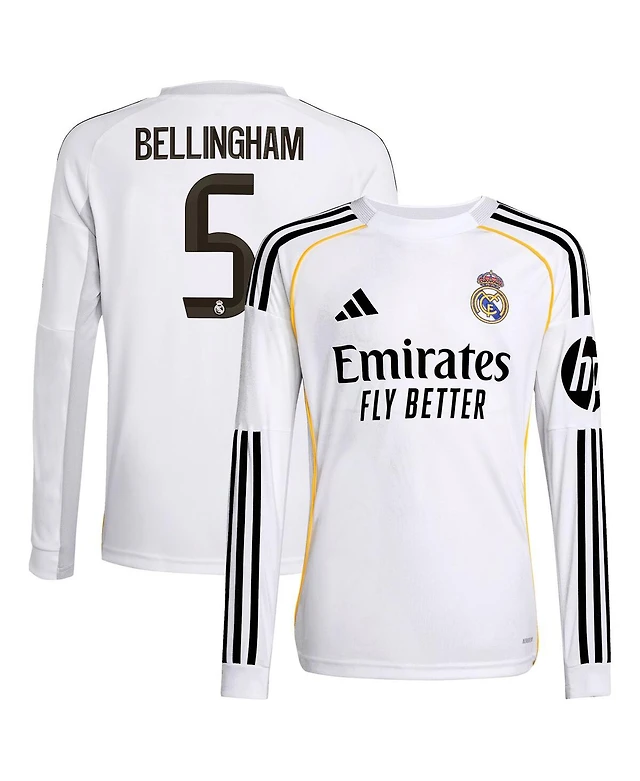 Adidas Big Boys and Girls Jude Bellingham White Real Madrid 2025/26 Home Replica Long Sleeve Jersey