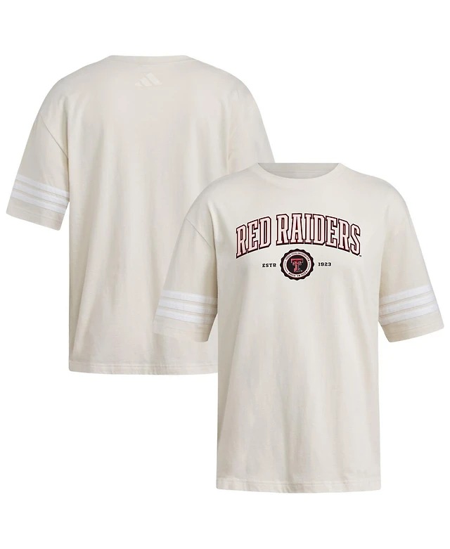 Adidas Women's Cream Texas Tech Red Raiders Fashion Three-Stripes Oversized T-Shirt