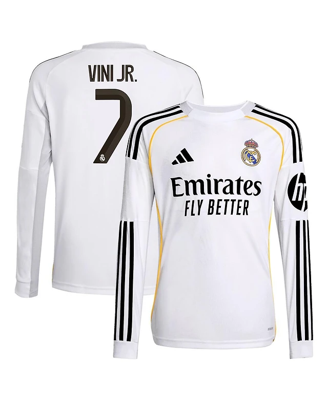 Adidas Big Boys and Girls Vini Jr. White Real Madrid 2025/26 Home Replica Long Sleeve Jersey