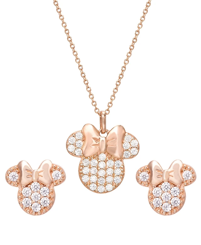 Disney Children's 2-Pc. Set Cubic Zirconia Pave Minnie Mouse Pendant Necklace & Matching Stud Earrings in 18k Rose Gold-Plated Sterling Silver
