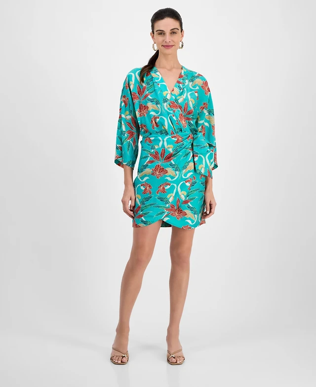 I.n.c. International Concepts Women's Surplice-Neck Long-Sleeve Mini Wrap Dress, Macy's Exclusive