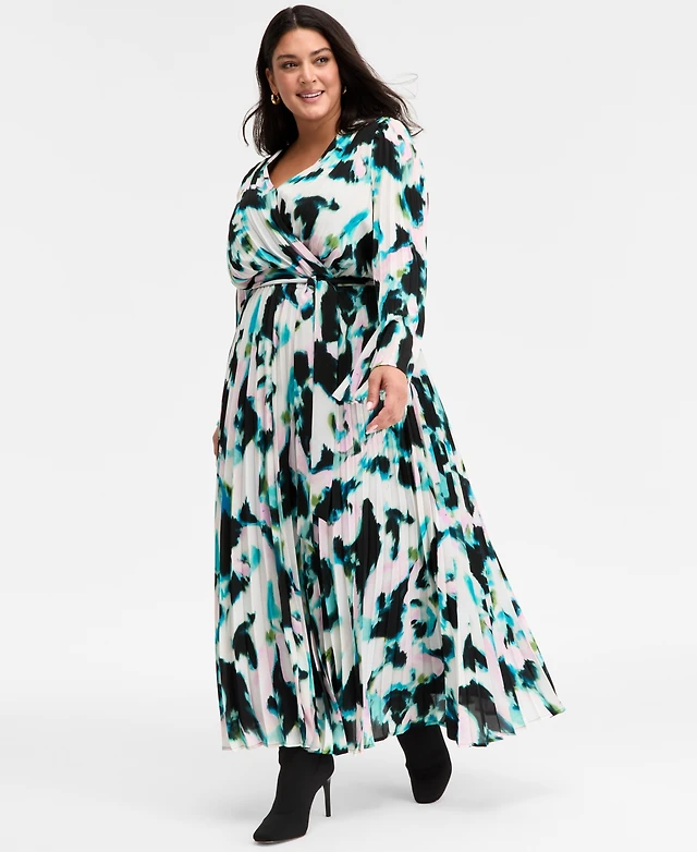 I.n.c. International Concepts Plus Printed Pleated Maxi Dress, Macy's Exclusive
