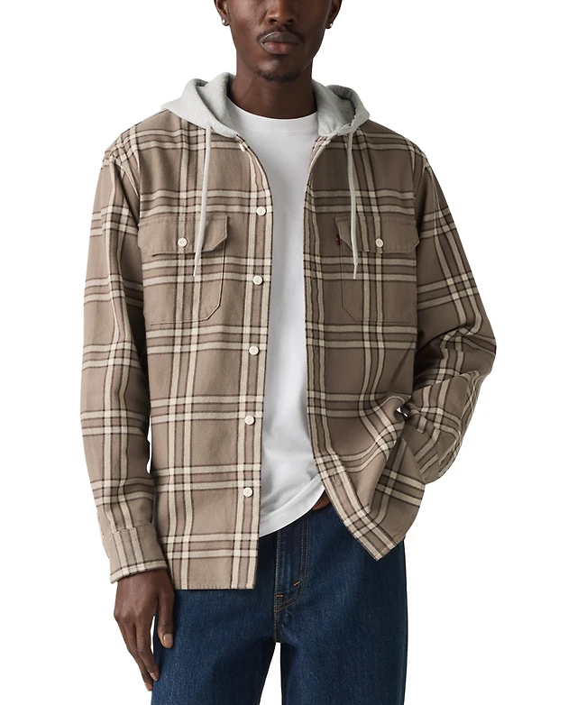 Levi's Men's Relaxed Fit Hooded Long Sleeve Button-Front Overshirt