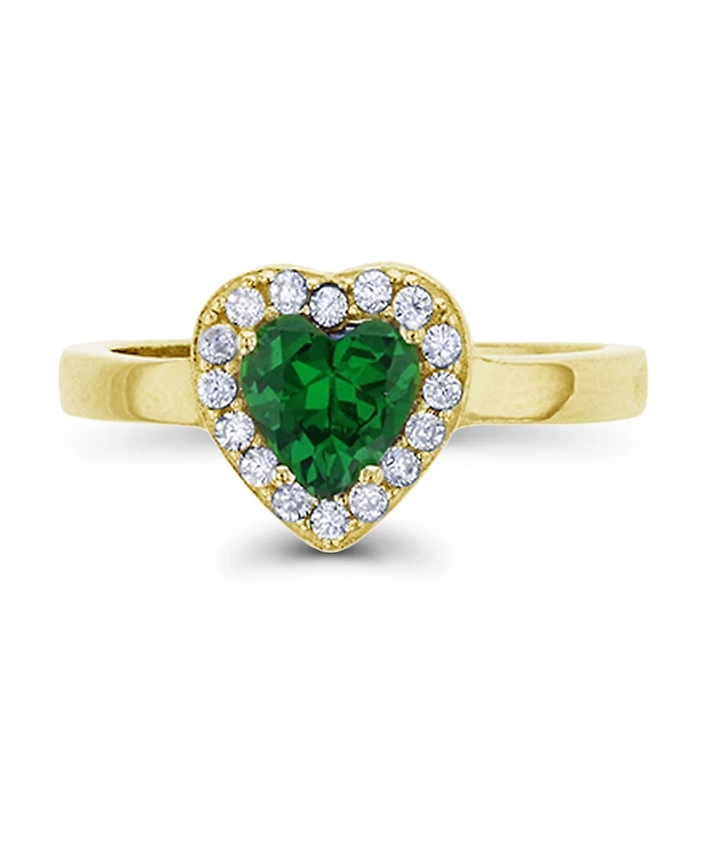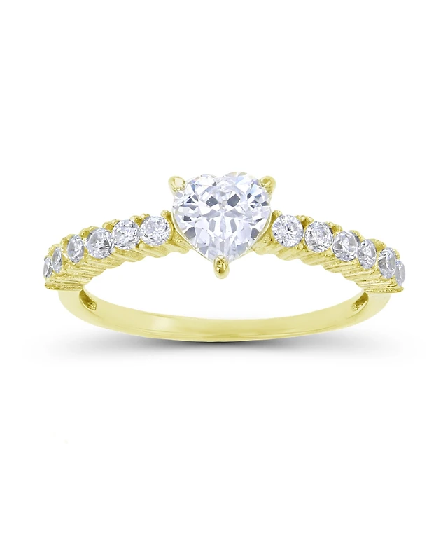 Cubic Zirconia 14K Gold Over Sterling Silver Heart Round Pave Ring