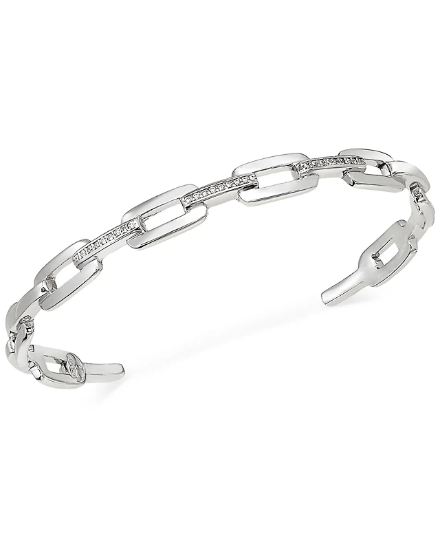 Diamond Link Cuff Bangle Bracelet (1/6 ct. t.w.) in Sterling Silver