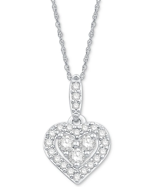 Diamond Heart Halo Pendant Necklace in 14k White Gold (1/6 ct. t.w.)