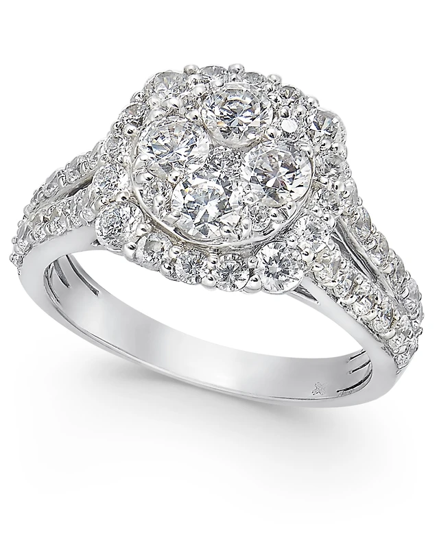 Diamond Halo Cluster Engagement Ring (2 ct. t.w.) in 14k White Gold