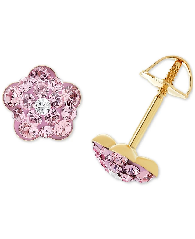 Macy's 2-Pc. Set Bow & Crystal Stud Earrings in 14k Gold Over Sterling Silver