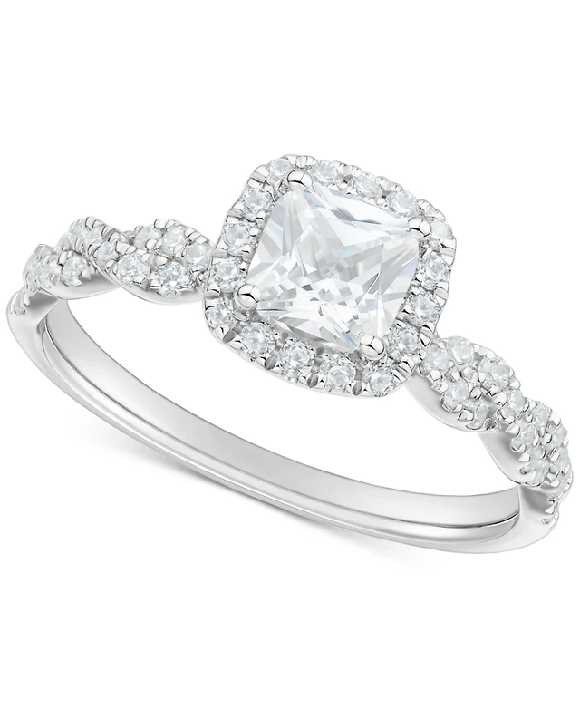 Diamond Square Halo Cluster Engagement Ring (1-1/2 ct. t.w.) in 14k White Gold