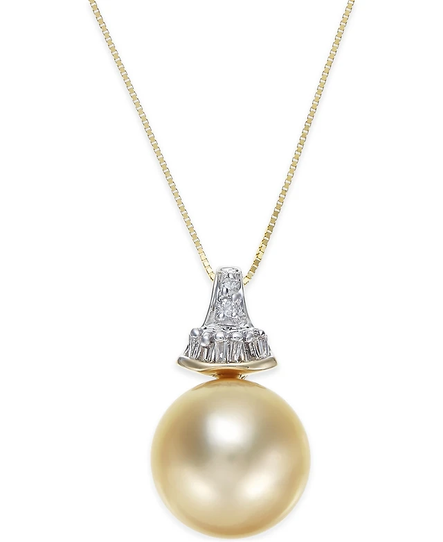 Cultured Golden South Sea Pearl (12mm) and Diamond (1/8 ct. t.w.) Pendant Necklace in 14k Gold