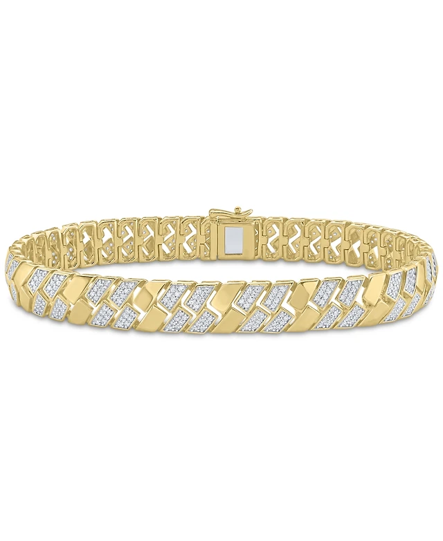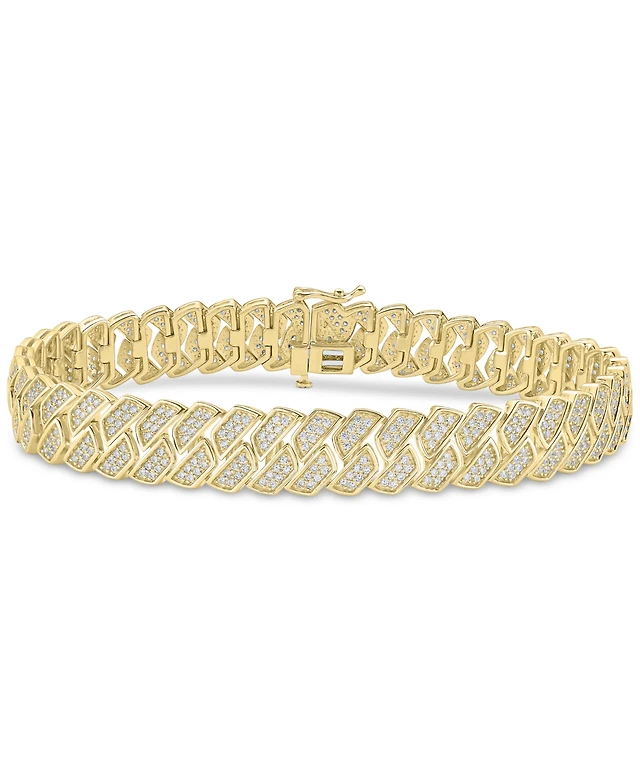 Men's Diamond Pave Cluster Square Link Bracelet (2 ct. t.w.) in 14k Gold-Plated Sterling Silver