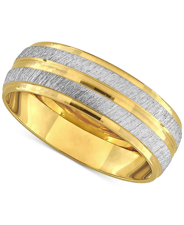 Men's Polished & Brush Textured Finish Wedding Band 14k Two-Tone Gold