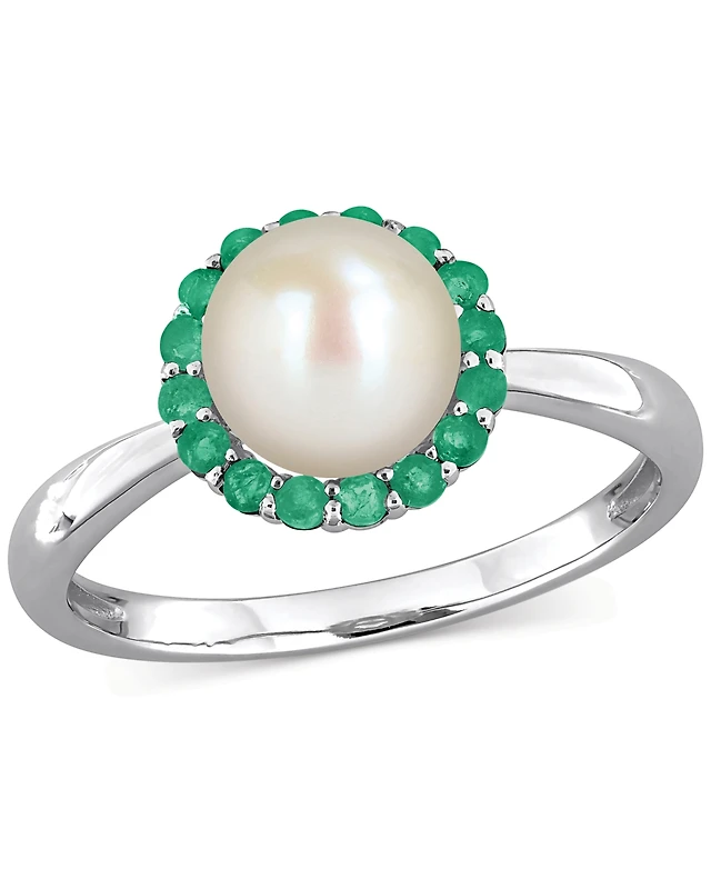Macy's Dyed Green Jade & Cultured Freshwater Pearl (4-5mm) 18" Collar Necklace in 10k Gold