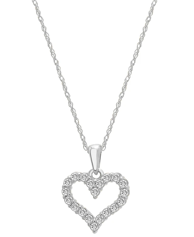 Diamond Heart Pendant Necklace in 14k White Gold (1/10 ct. t.w.)