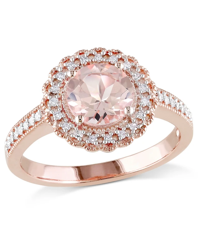 Morganite (4/5 ct. t.w.) and Diamond (1/7 Square Halo Ring 10k Rose Gold
