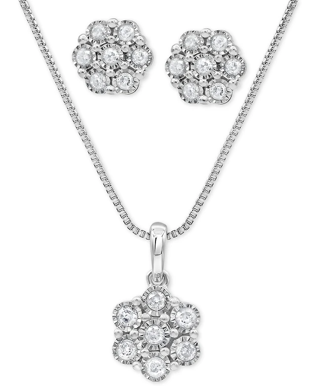 2-Pc. Set Diamond Cluster Pendant Necklace & Matching Stud Earrings (1/2 ct. t.w.) in Sterling Silver
