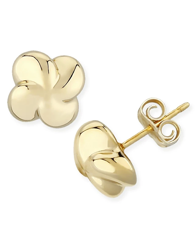 Twist Clover Stud Earrings Set in 14k Yellow Gold