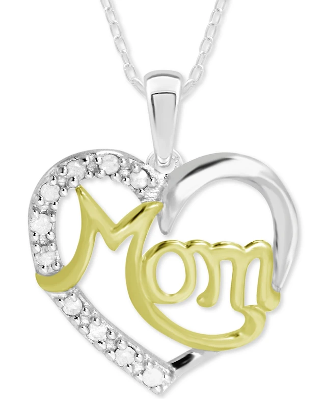 Diamond Mom Heart Pendant Necklace (1/10 ct. t.w.) in Sterling Silver & 18K Gold-Plate