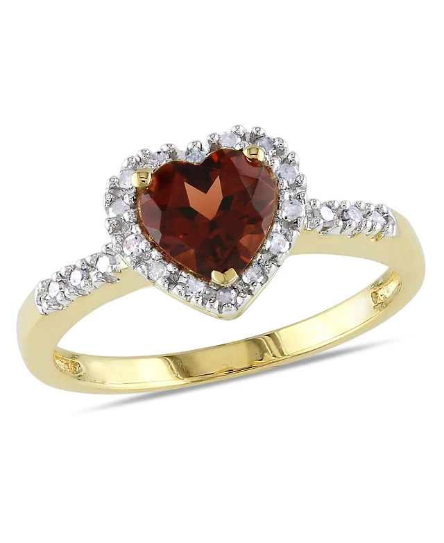 Garnet and Diamond Halo Heart Ring