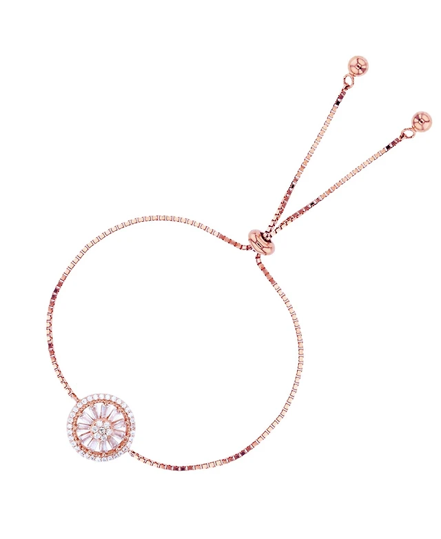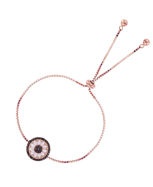 Cubic Zirconia Brown and Pink Round and Baguette Bar Adjustable Bolo Bracelet in 14K Rose Gold Over Sterling Silver