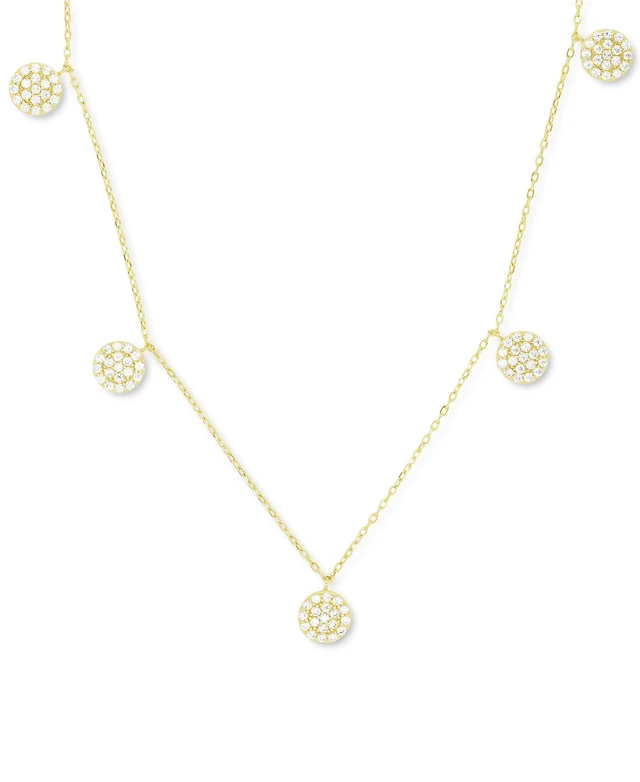 Cubic Zirconia Cluster Disc Dangle 17" Statement Necklace Sterling Silver (Also 14k Gold Over Silver)