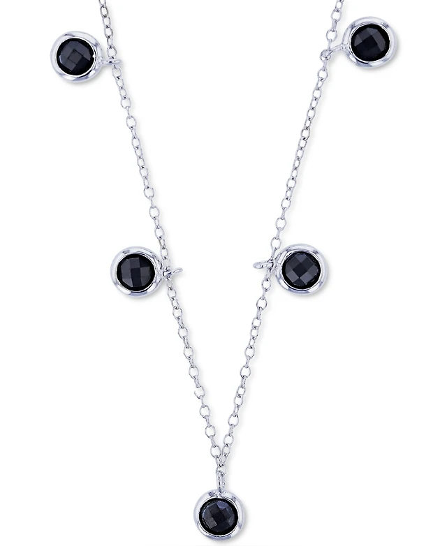 Black Spinel Bezel Dangle 18" Statement Necklace (1-3/8 ct. t.w.) in Sterling Silver