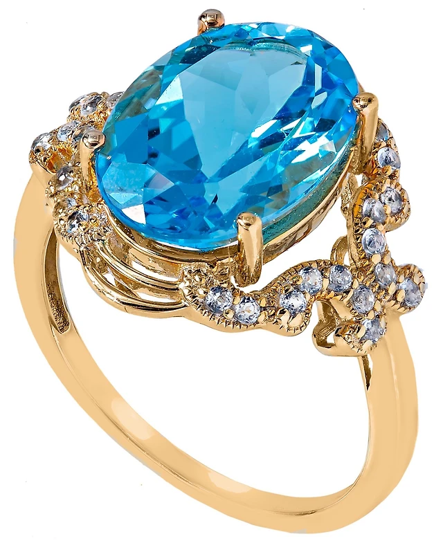 Blue Topaz (7 ct. t.w) Oval Ring 14K Gold Plated Sterling Silver