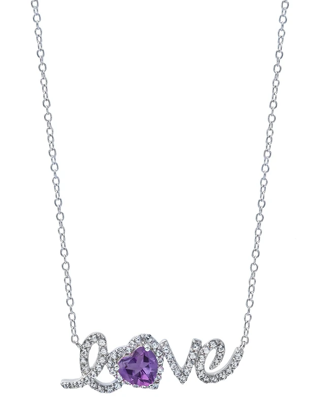 Amethyst (5/8 ct. t.w) and White Topaz (1 ct. t.w) 'Love' Necklace in Sterling Silver
