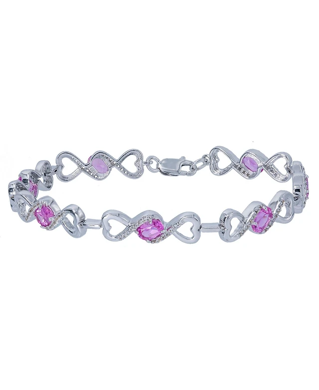 Amethyst (3-1/2 ct. t.w) & White Topaz Heart Link Bracelet in Sterling Silver