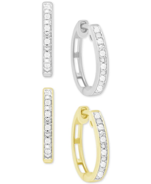 2-Pc. Set Diamond Hoop Earrings (1/6 ct. t.w.) in Sterling Silver & 14k Gold-Plated Sterling Silver