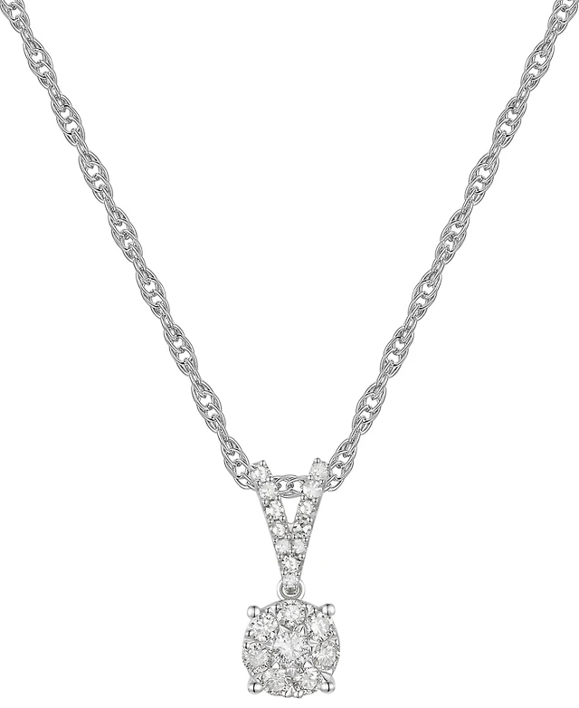 Diamond Cluster 18" Pendant Necklace (1/4 ct. t.w.) in 10k White Gold