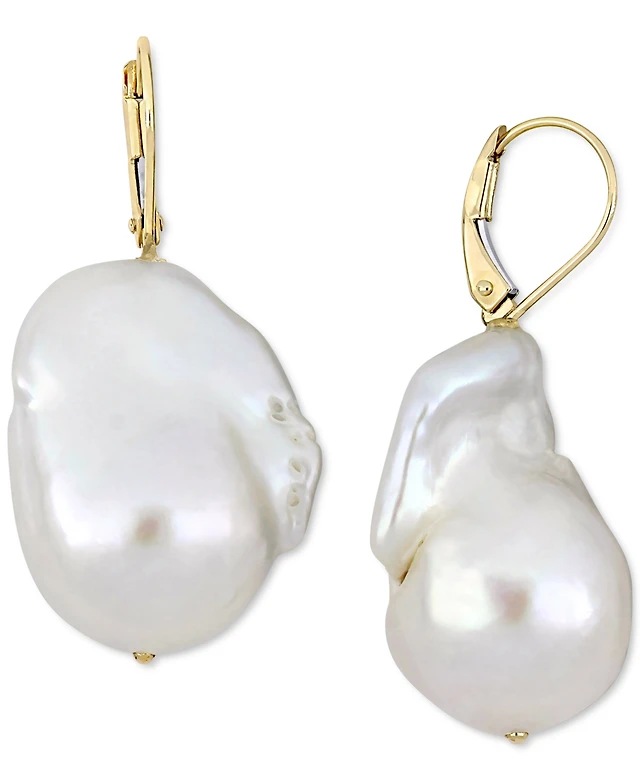 Cultured Freshwater Baroque Pearl (12mm and 8 x 6mm) Linear Drop Earrings 14k Gold
