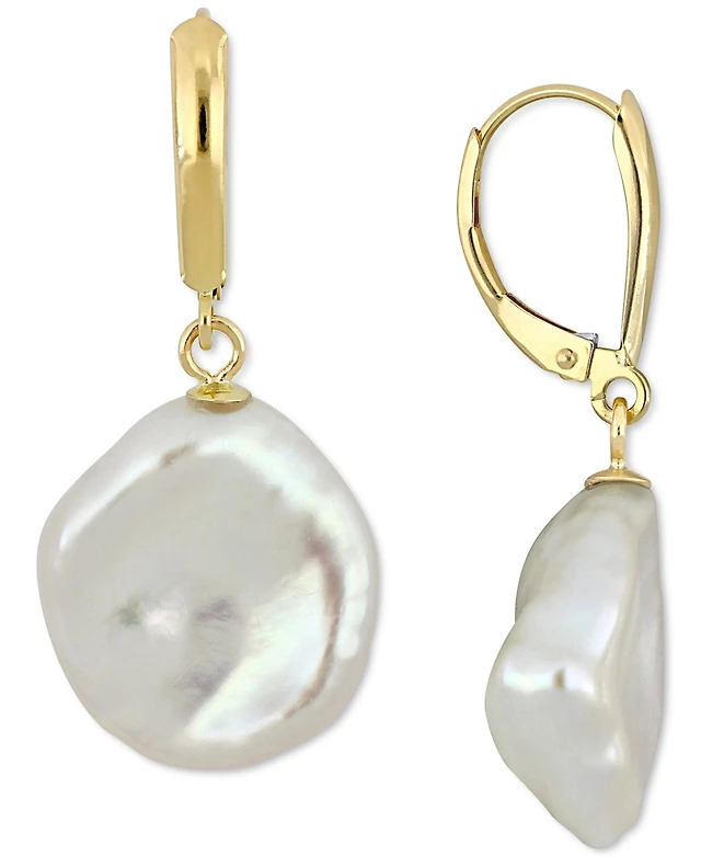 Cultured Freshwater Baroque Pearl (12mm) Dangle Hoop Earrings 14k Gold