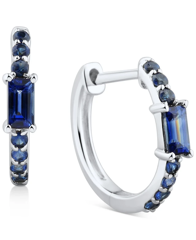 Sapphire Extra Small Hoop Earrings (1/2 ct. t.w.) in 14k White Gold, 0.43"