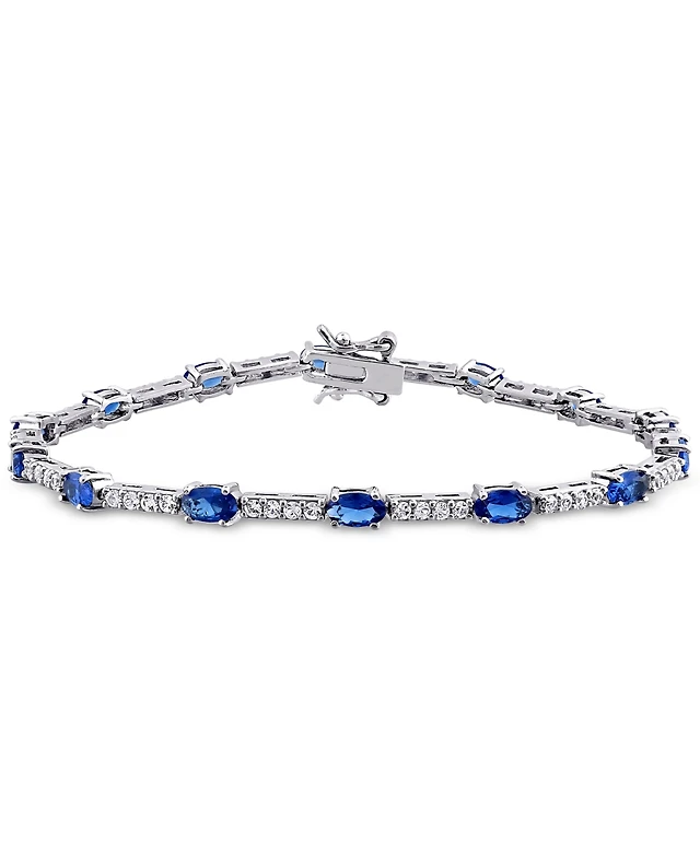 Lab-Grown Blue Sapphire (5-1/4 ct. t.w.) & Lab-Grown White Sapphire (5-1/4 ct. t.w.) Link Bracelet in Sterling Silver