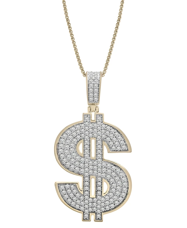 Men's Diamond Dollar Sign 22" Pendant Necklace (1/2 ct. t.w.) in 14K Gold-Plated Sterling Silver