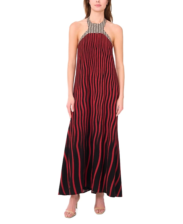 1.state Women's Sleeveless Halter Chiffon Maxi Dress