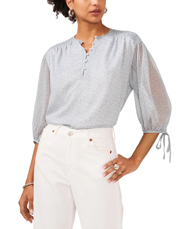 1.state Women's Printed Pintuck 3/4-Sleeve Blouse