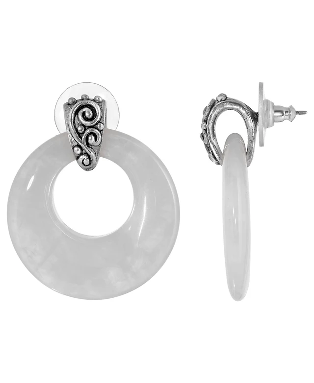 2028 Pewter Semi Precious Round Quartz Hoop Earrings