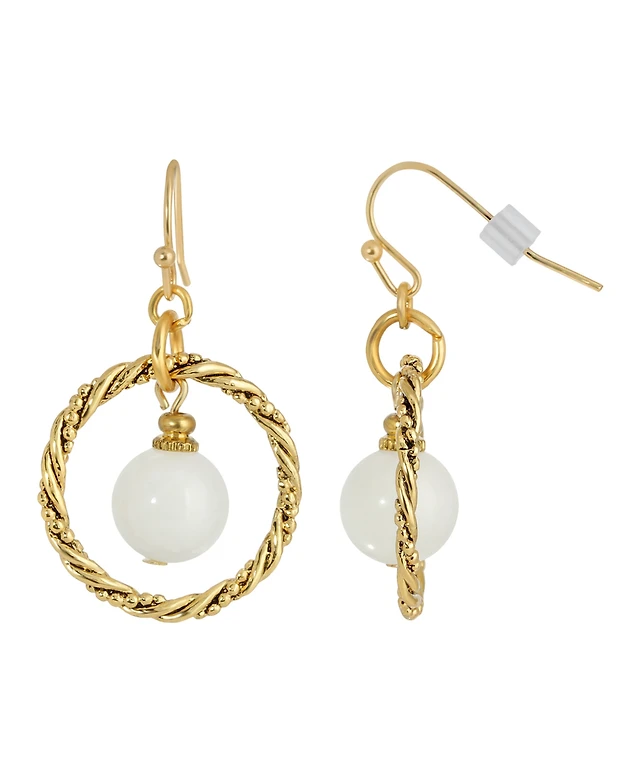 2028 Gold-Tone Semi Precious Round Stone in Hoop Earrings