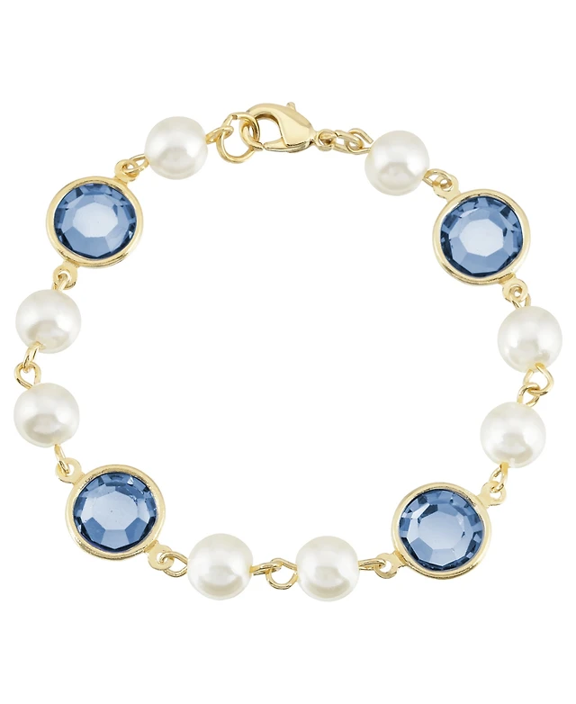 2028 Gold-Tone Imitation Pearl with Dark Blue Channels Link Bracelet
