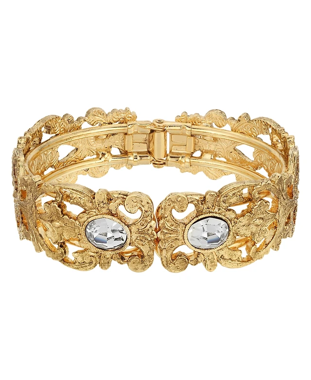 2028 14K Gold-tone Crystal Flower Overlay Belt Bracelet