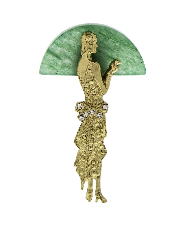 2028 14K Gold-tone Green Flower Overlay Belt Bracelet