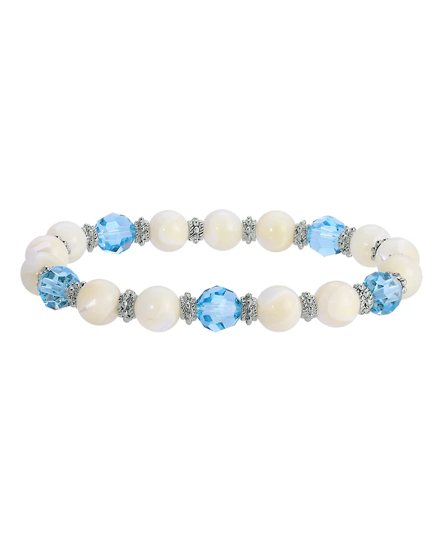 2028 Mother of Imitation Pearl with Aqua Stone Stretch Bracelet