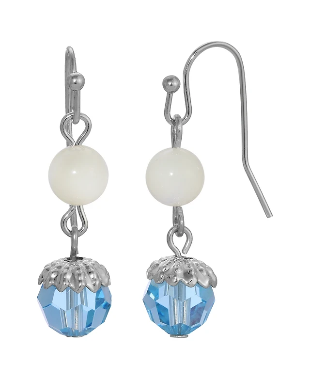 2028 Mother of Imitation Pearl with Aqua Bead Drop Earrings